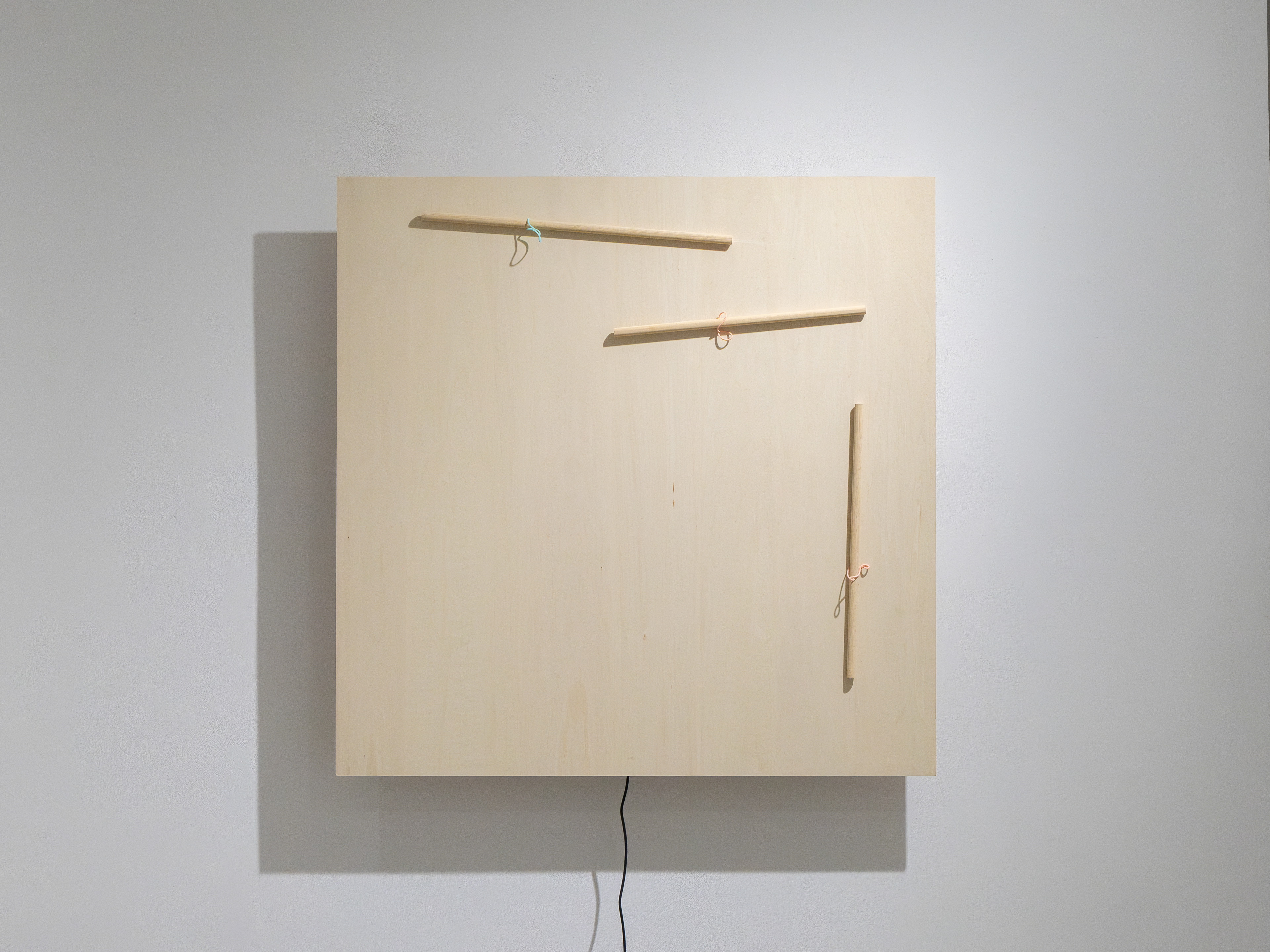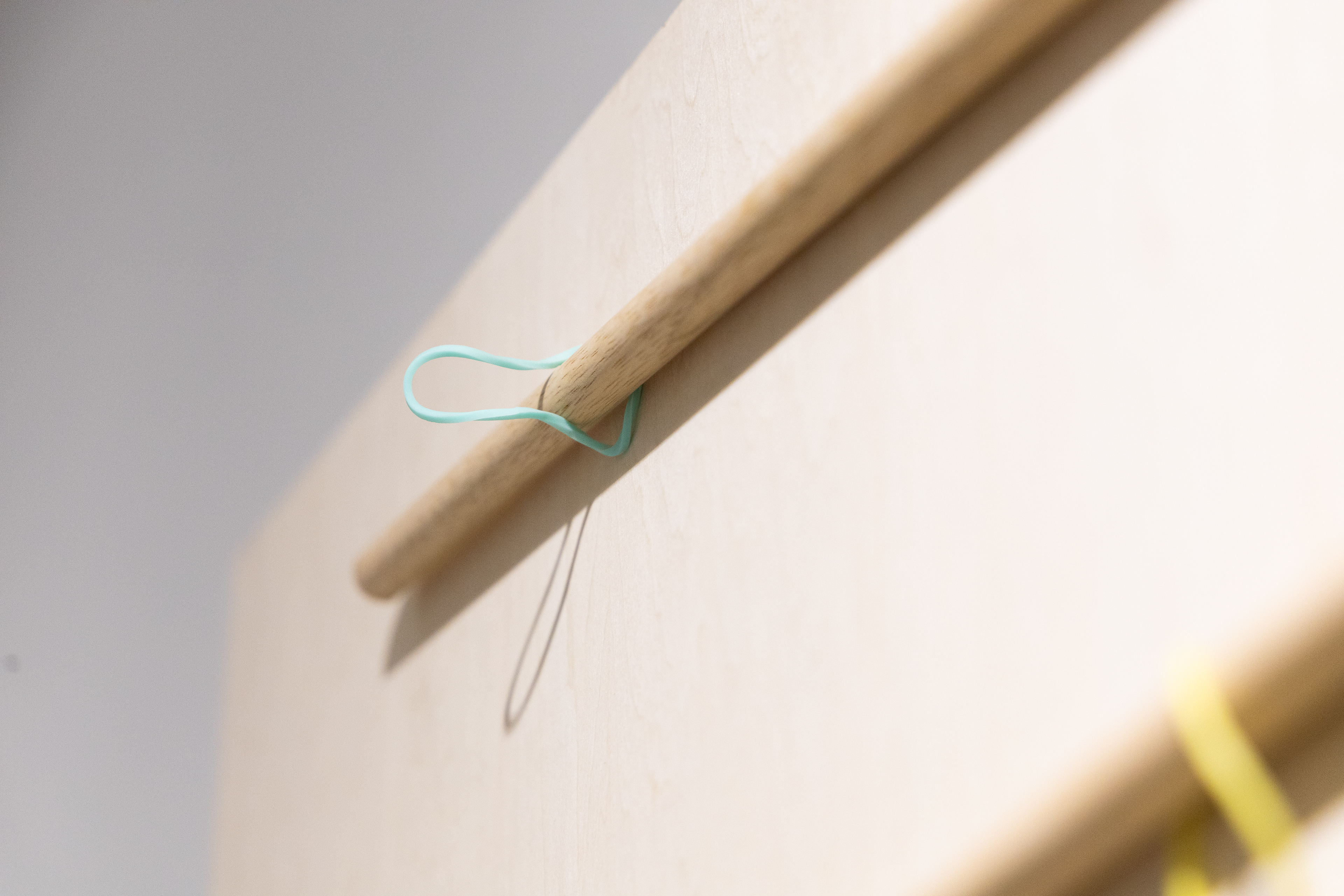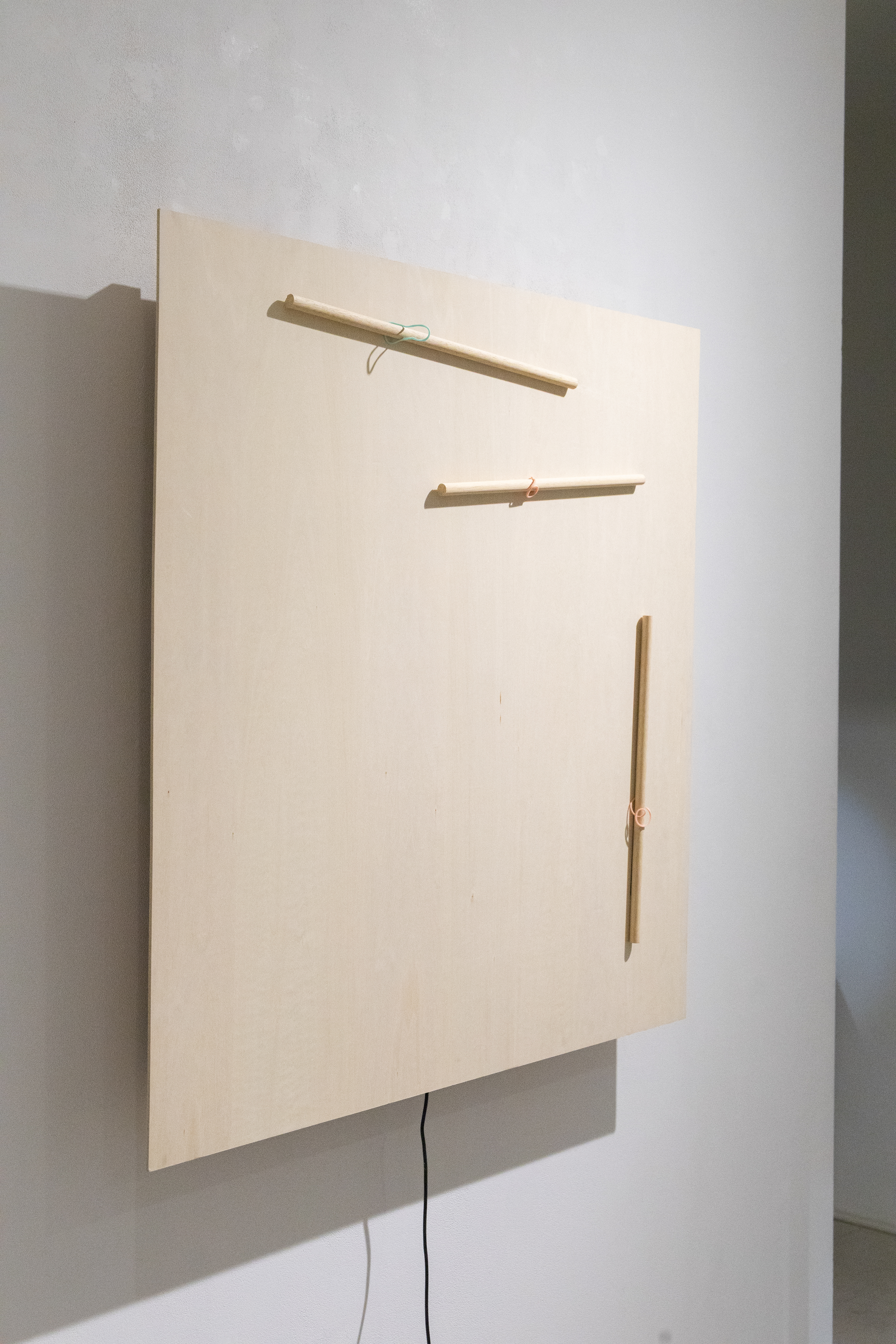 輪ゴム、木の棒、ステッピングモーター、合板
