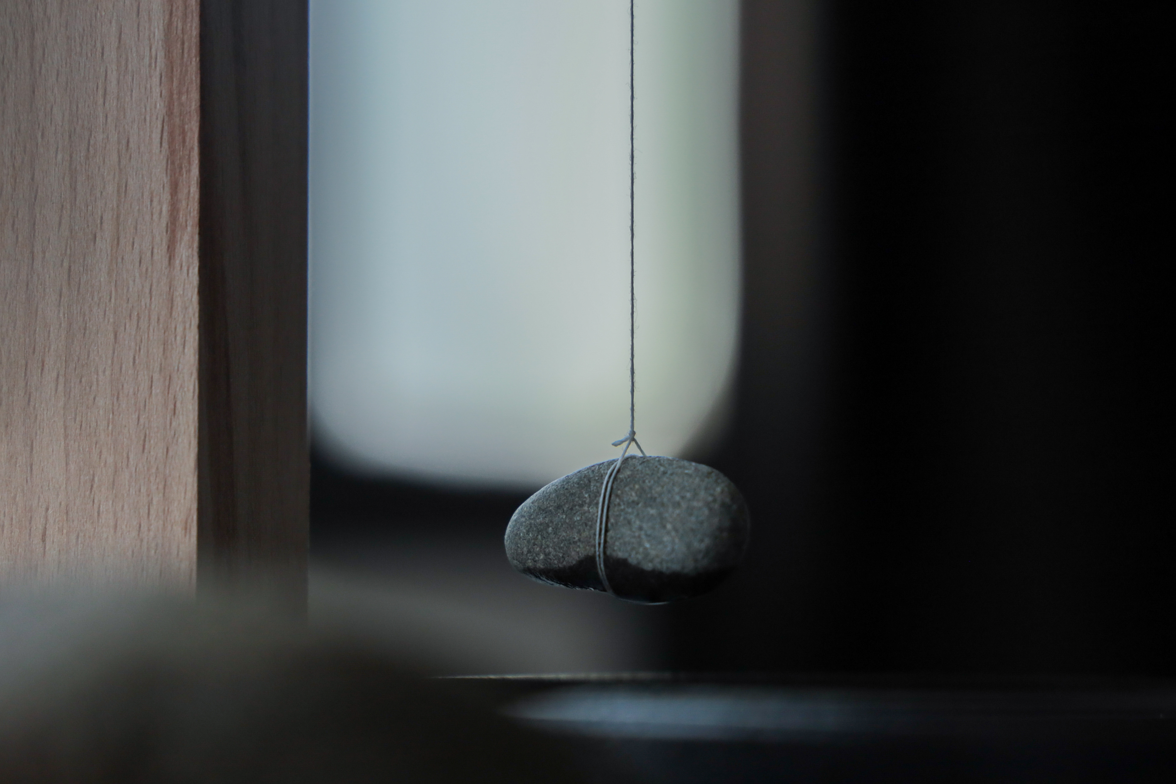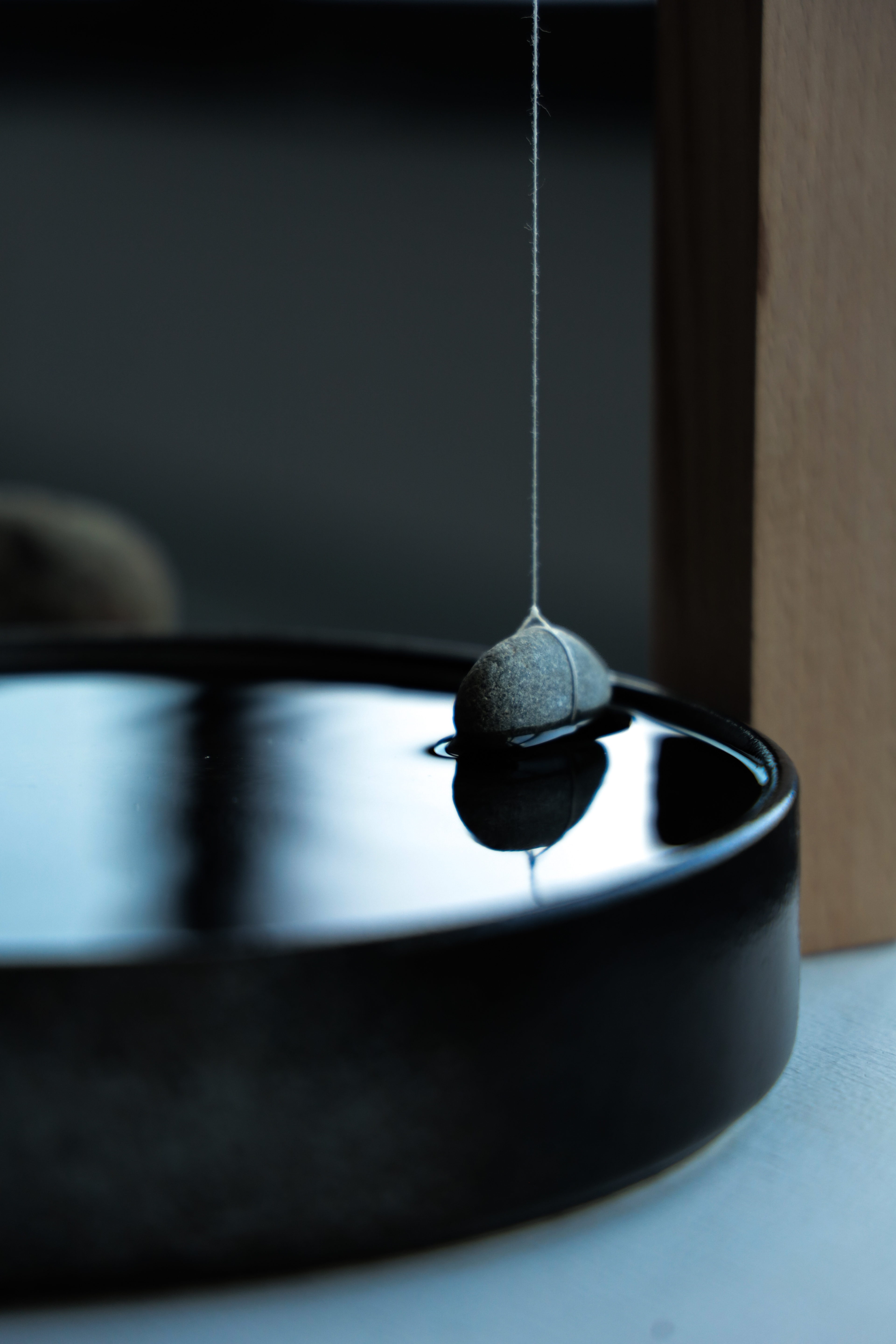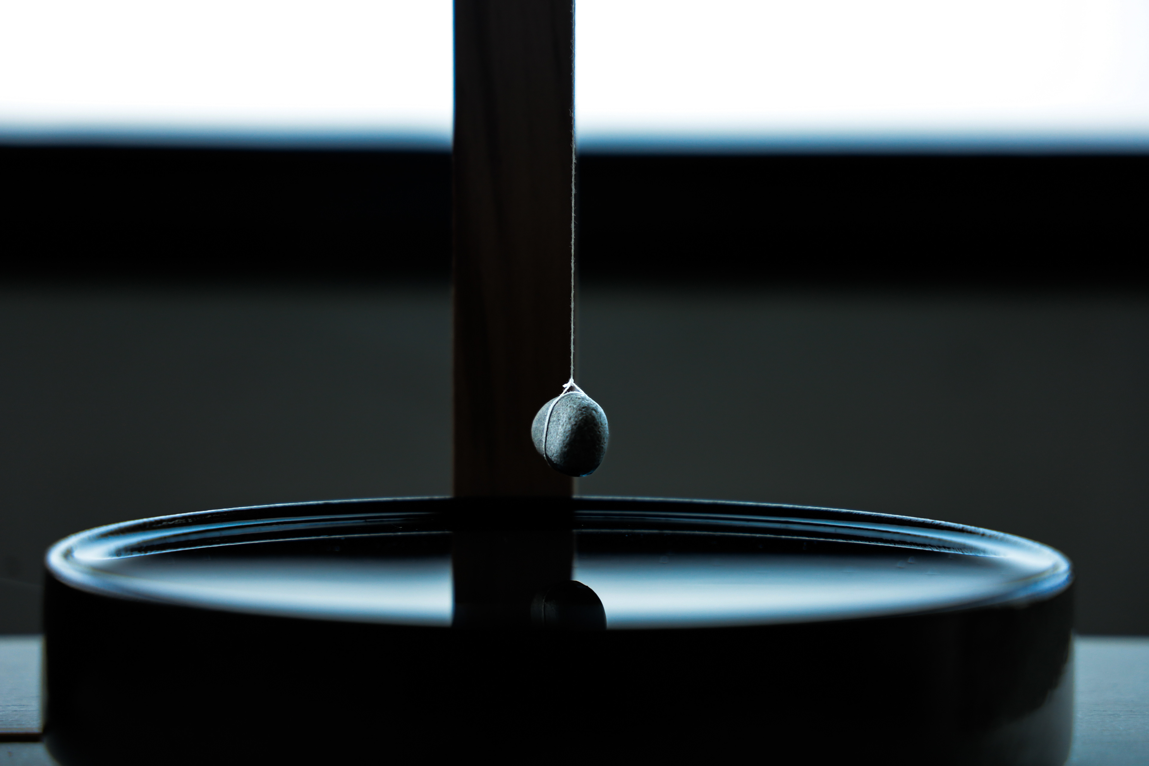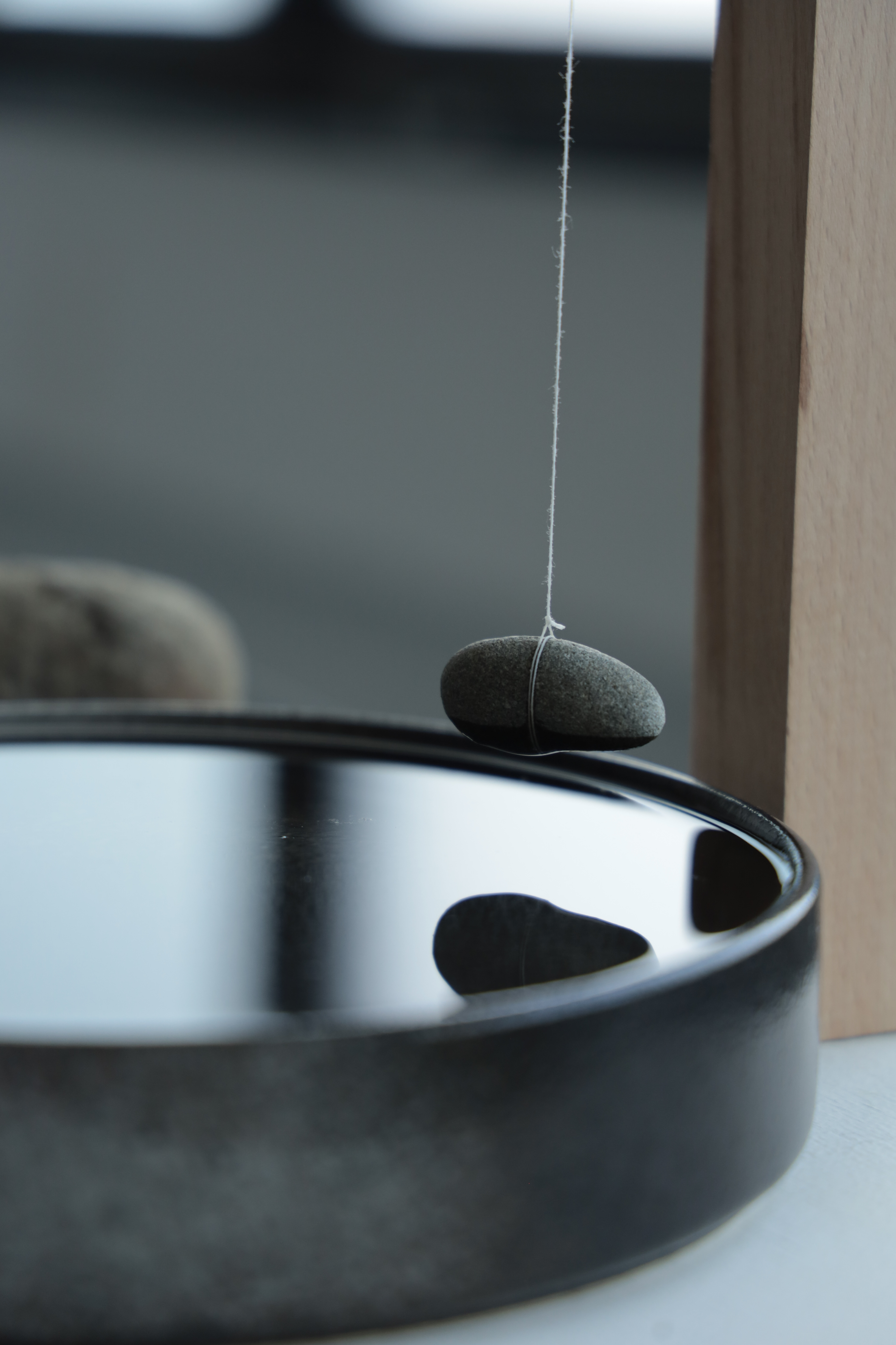 水面に浮かぶ石と竹串は一本の糸で結ばれ、糸と木との摩擦は、静止摩擦と動摩擦のあいだを絶えず行き来する。
