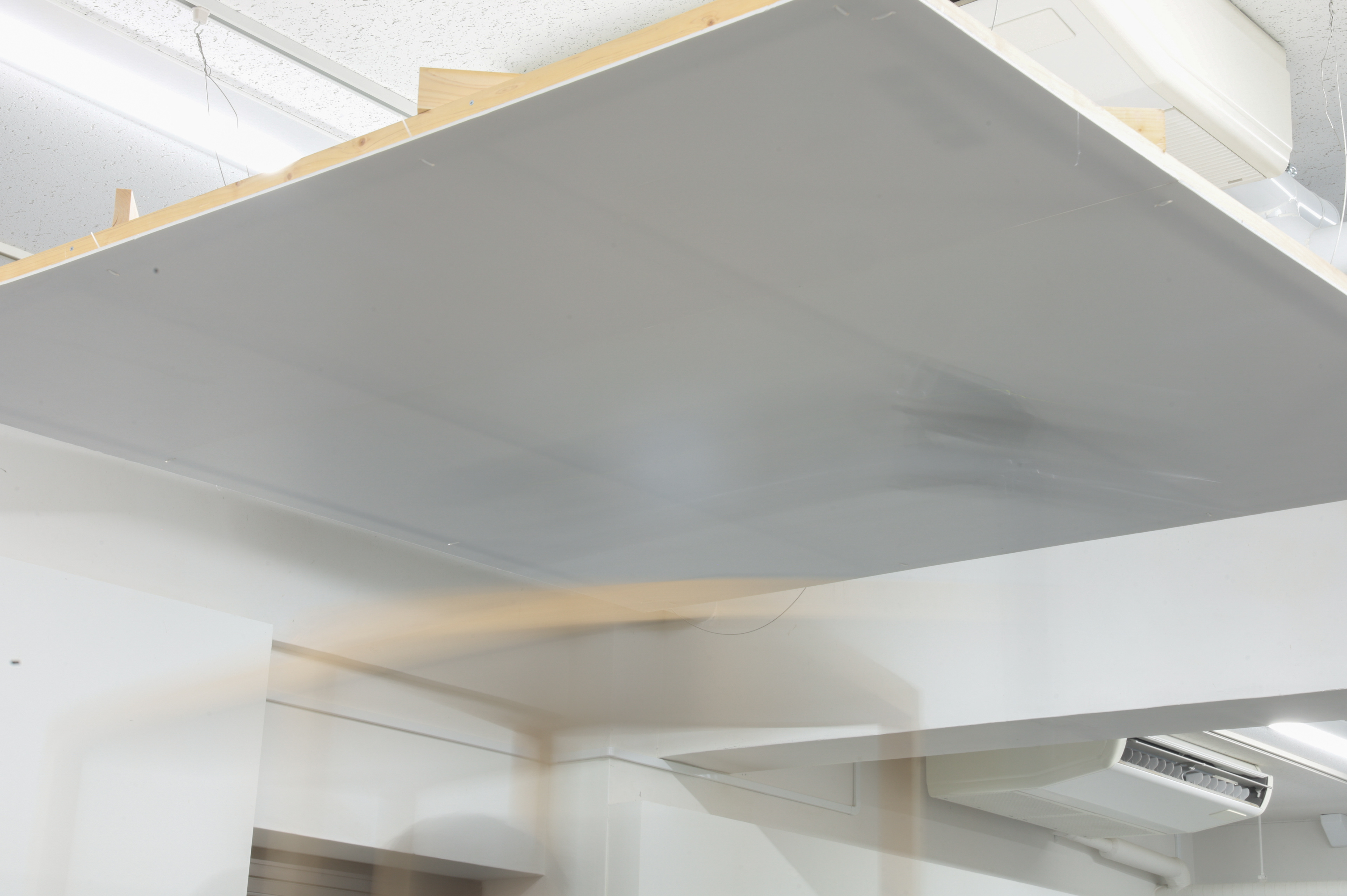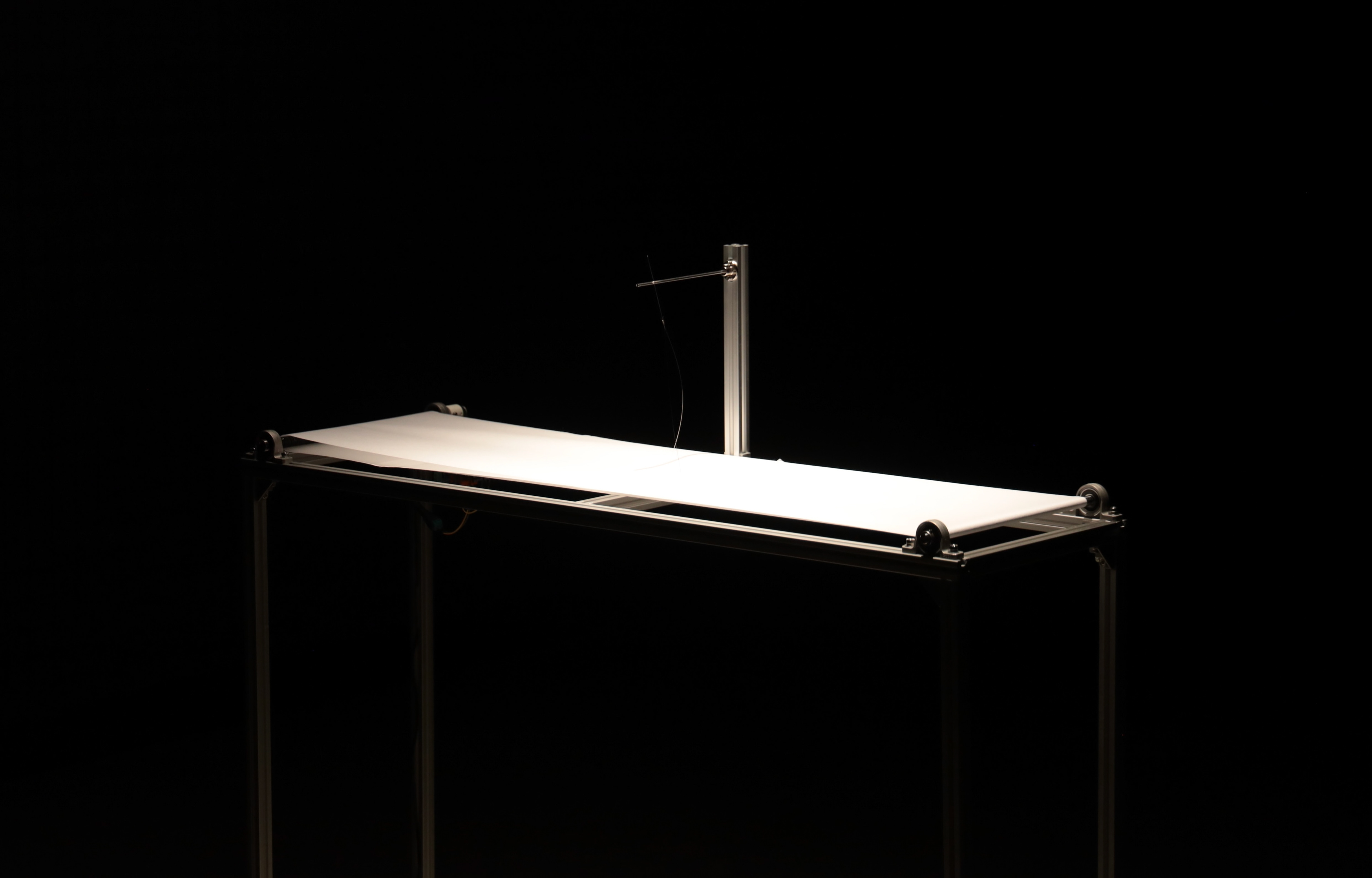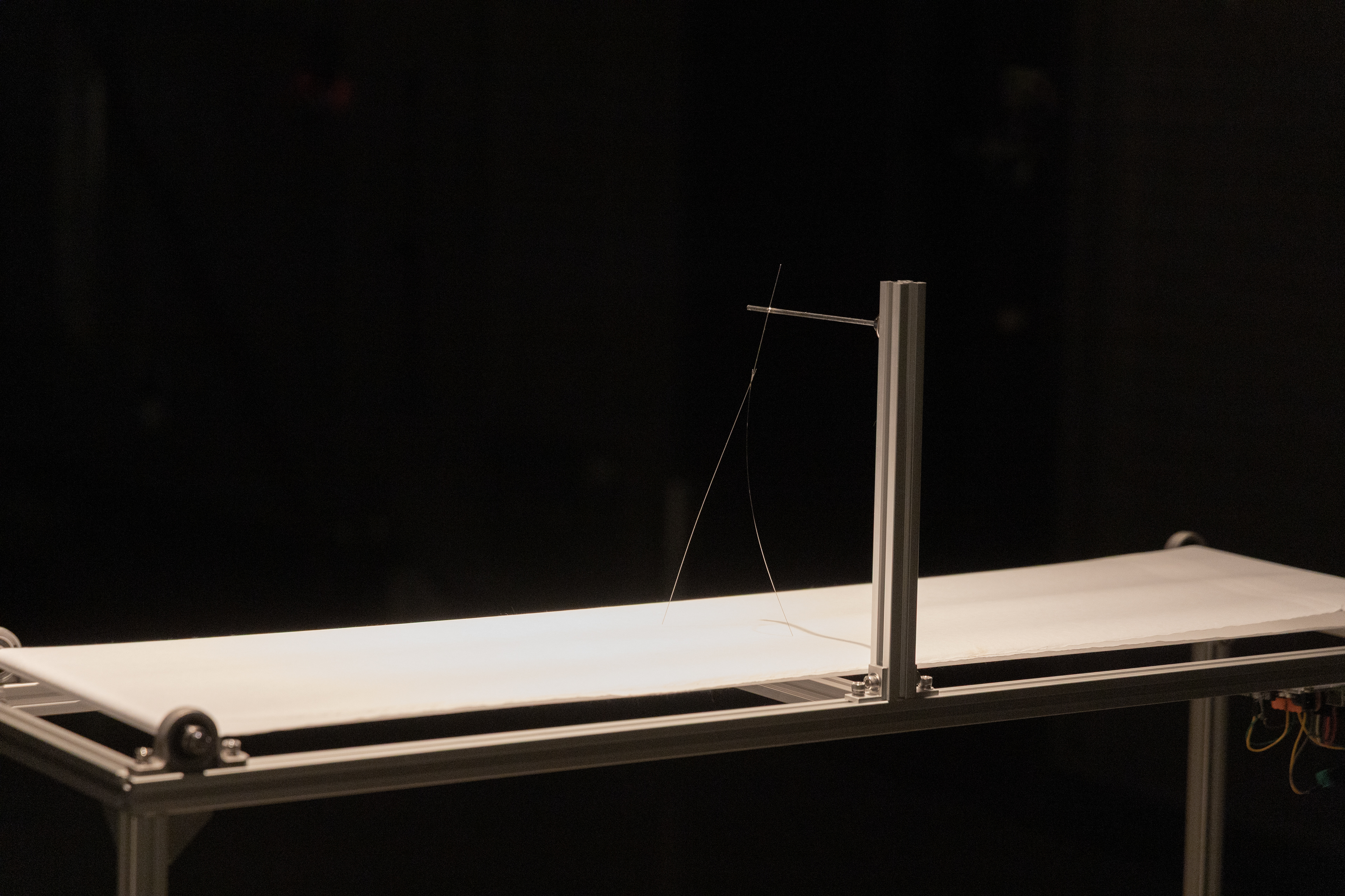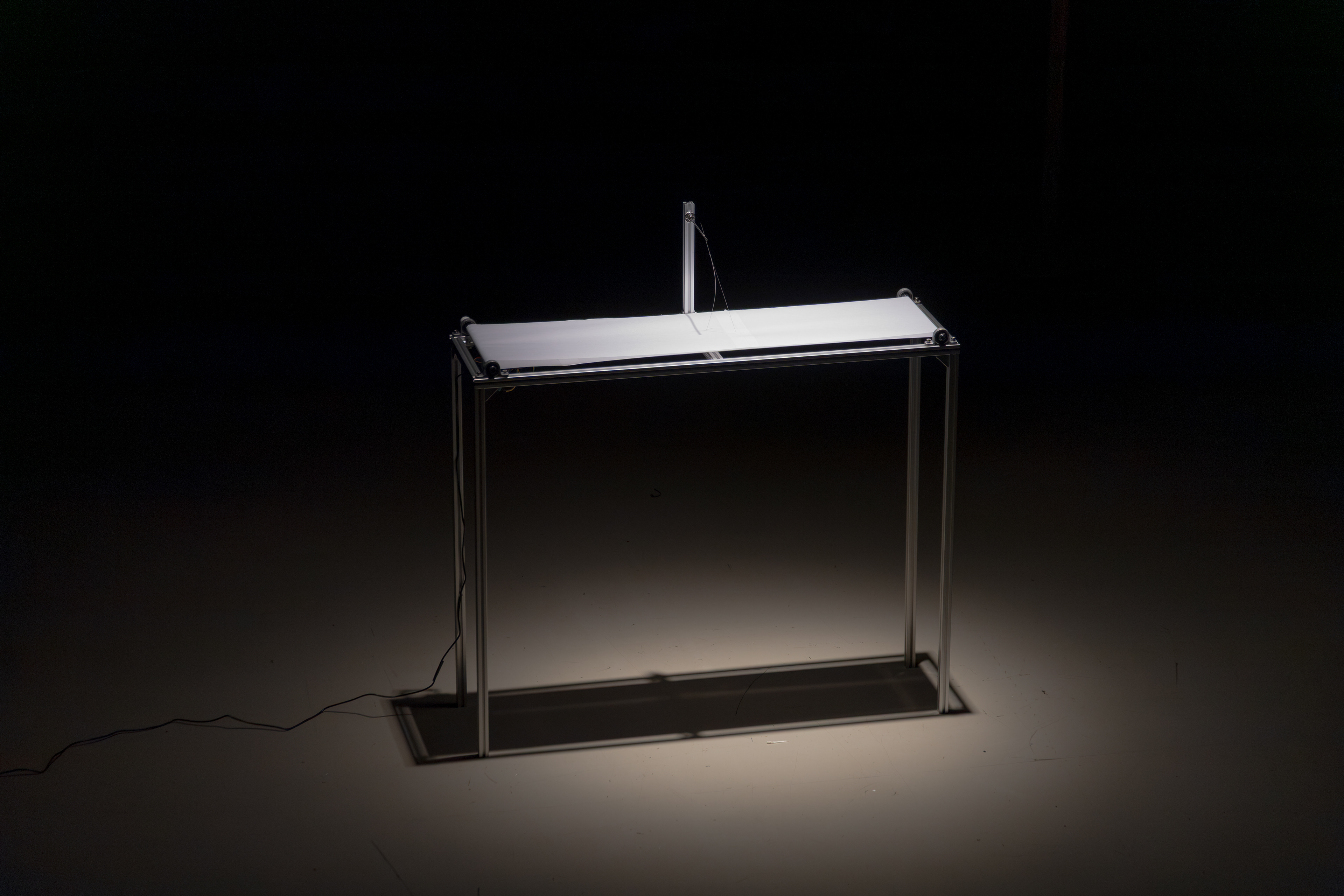 アルミフレーム、ピアノ線、ステッピングモーター、障子紙
