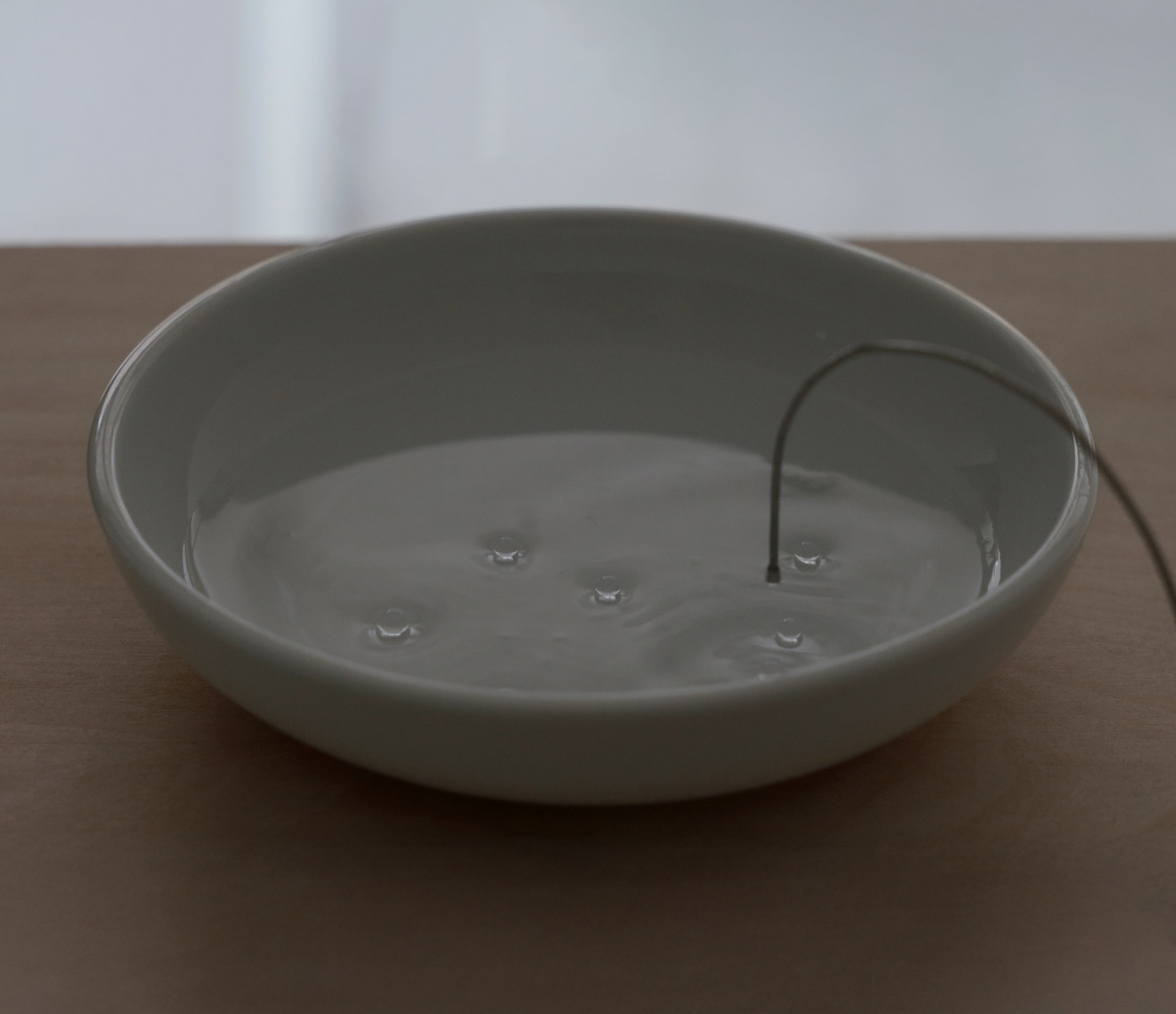 絵皿、木、スピーカー、工業用注射針、石鹸水